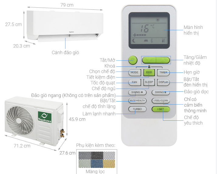 - Chế độ cài đặt yêu thích I-set: Máy lạnh Nagakawa Inverter này có khả năng ghi nhớ cài đặt yêu thích của người sử dụng, từ đó giảm bớt thao tác và thời gian cài đặt máy lạnh mỗi khi dùng.