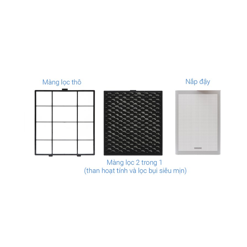 - Bộ lọc 3 lớp: màng lọc thô, than hoạt tính, màng lọc bụi siêu mịn mang đến hiệu quả vượt trội với khả năng lọc bụi thô, lông động vật, khử mùi và khí độc hại,... Lọc hiệu quả 99.9% bụi siêu mịn PM0.3 (0.3 μm) và kháng khuẩn lên đến 99.9%. Màng lọc bụi siêu mịn và màng lọc than hoạt tính với thiết kế 2 trong 1 thay thế dễ dàng sau 12 tháng.