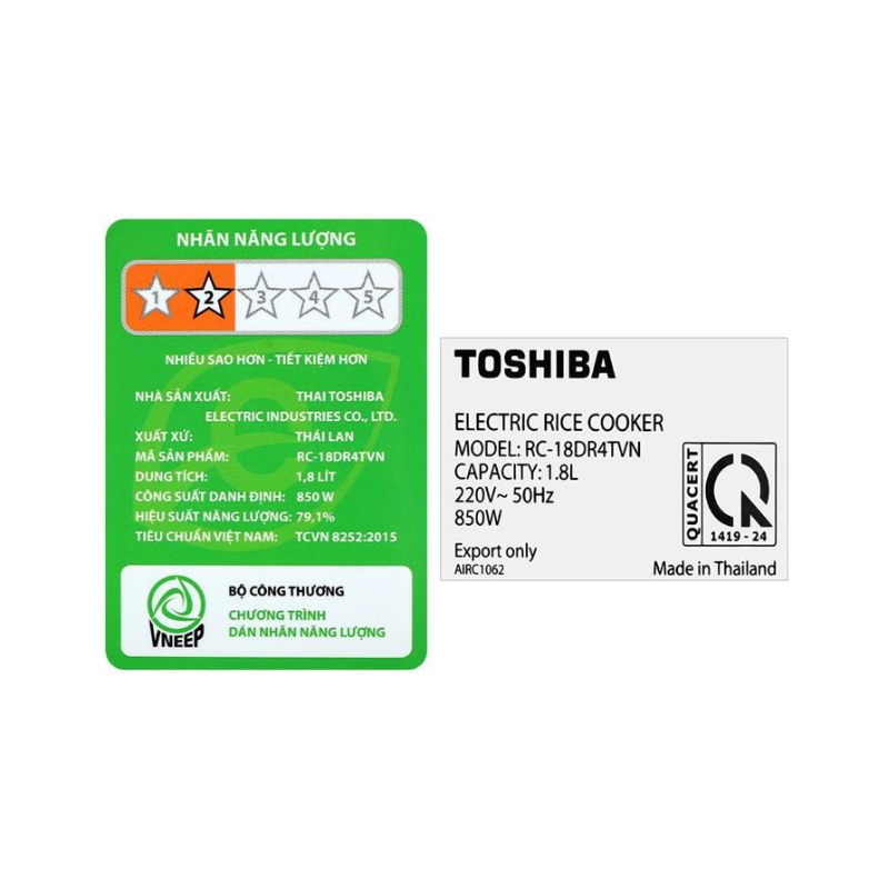Nồi cơm điện tử Toshiba 1.8 lít RC-18DR4TVN(W) - Trắng